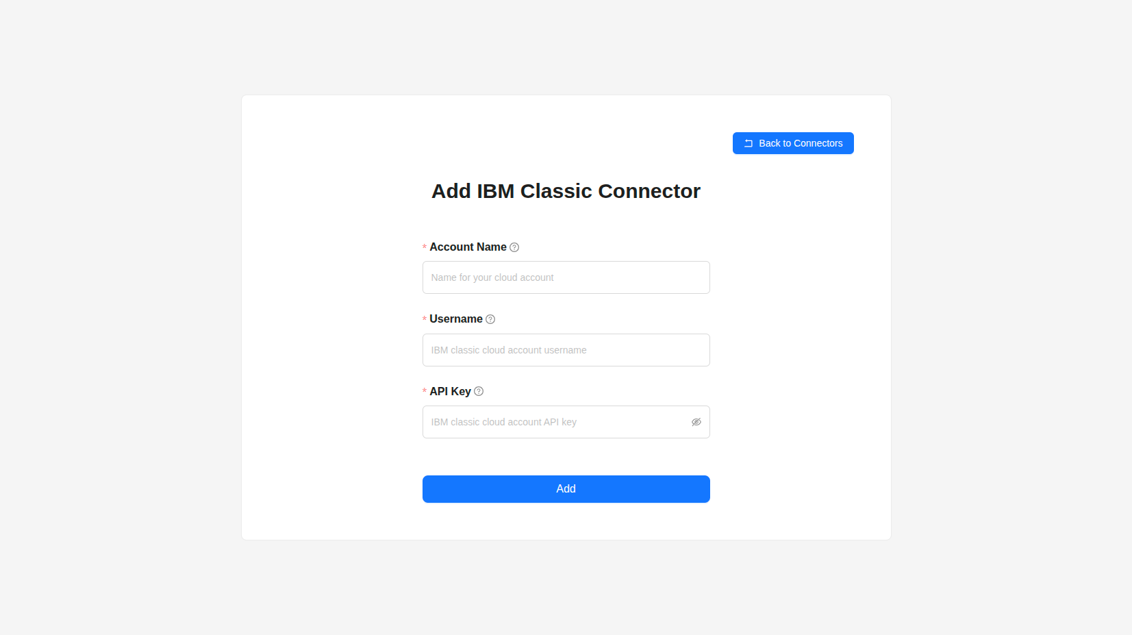 Adding an IBM Cloud Classic Connector