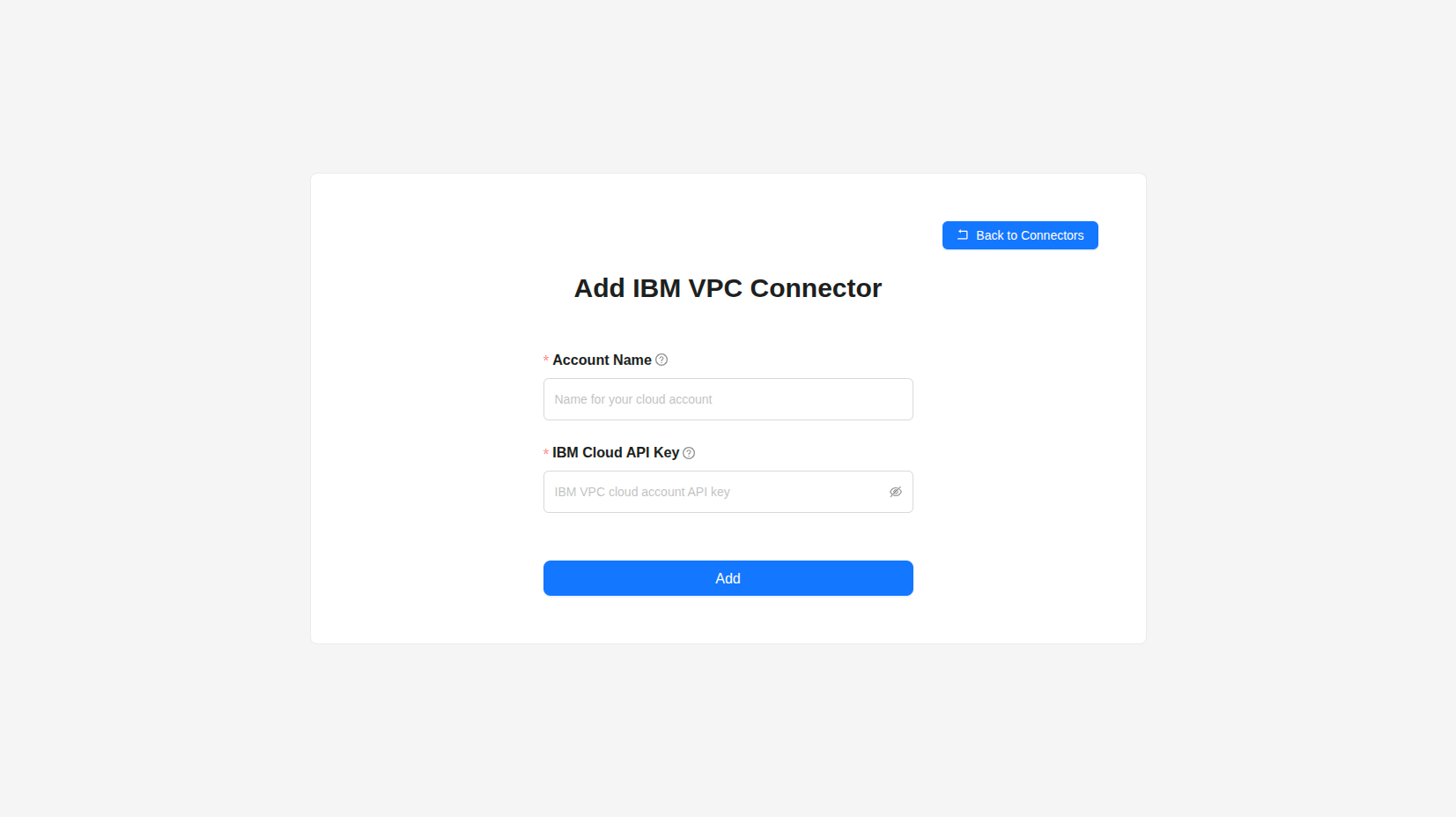 Adding an IBM Cloud VPC Connector
